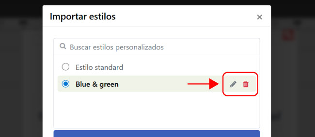 Puedes renombrar un estilo haciendo clic en el icono del lápiz.