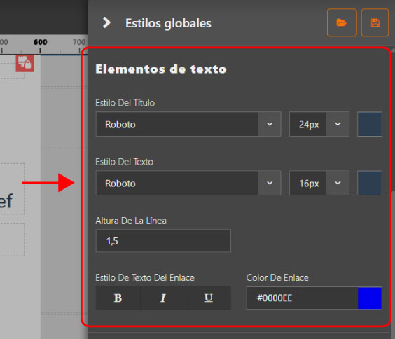 Cuando modificas un ajuste en los estilos globales, los cambios se aplican automáticamente a todos los elementos correspondientes. Esto significa que puedes actualizar rápidamente el aspecto de todo el email sin intervenir en cada contenido individualmente.