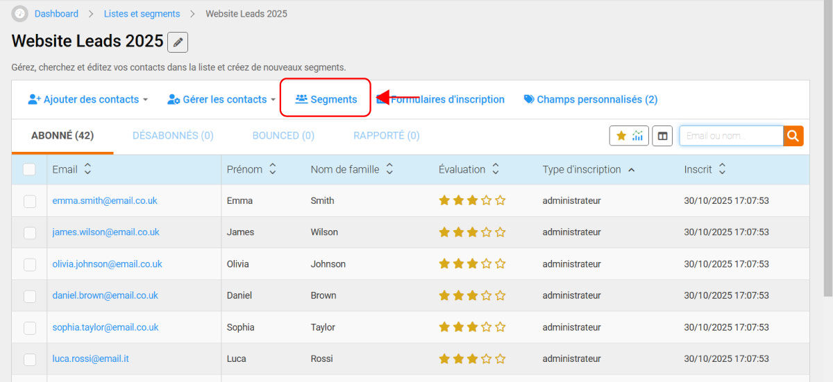 La segmentation vous permet de créer des groupes de contacts partageant certaines caractéristiques ou certains comportements, afin d’envoyer des contenus plus ciblés et pertinents.