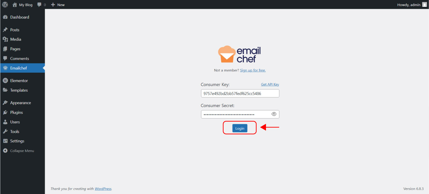 Go back to your WordPress dashboard and install the Emailchef plugin.