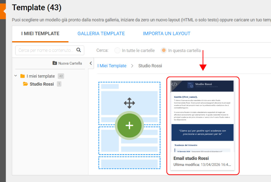 Se tutto ok posso fare clic su Salva. Da quel momento il template è disponibile nella libreria, pronto per essere usato nelle campagne.