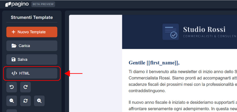 Nei prossimi paragrafi ti mostriamo due esempi di email marketing B2B creati con Pagino in settori molto diversi: una per uno studio di commercialisti, l’altra per promuovere una funzionalità di una piattaforma SaaS.