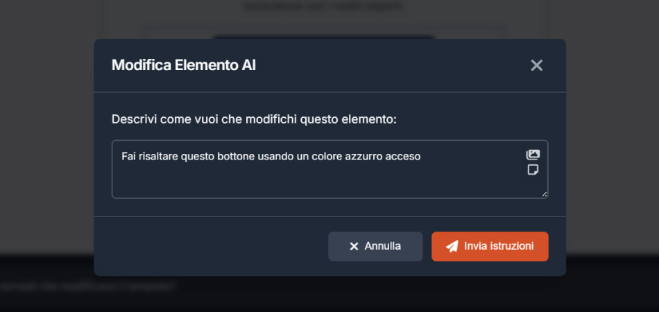 In questo caso scrivo: “Fai risaltare questo bottone usando un colore azzurro acceso”, il cambiamento è stato applicato in pochi secondi, senza toccare il codice.