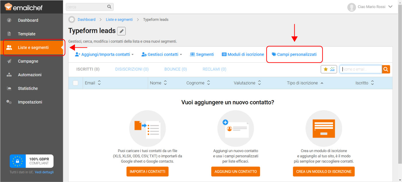 Da ora in poi, ogni nuovo lead che compila il tuo Typeform sarà automaticamente aggiunto in Emailchef.