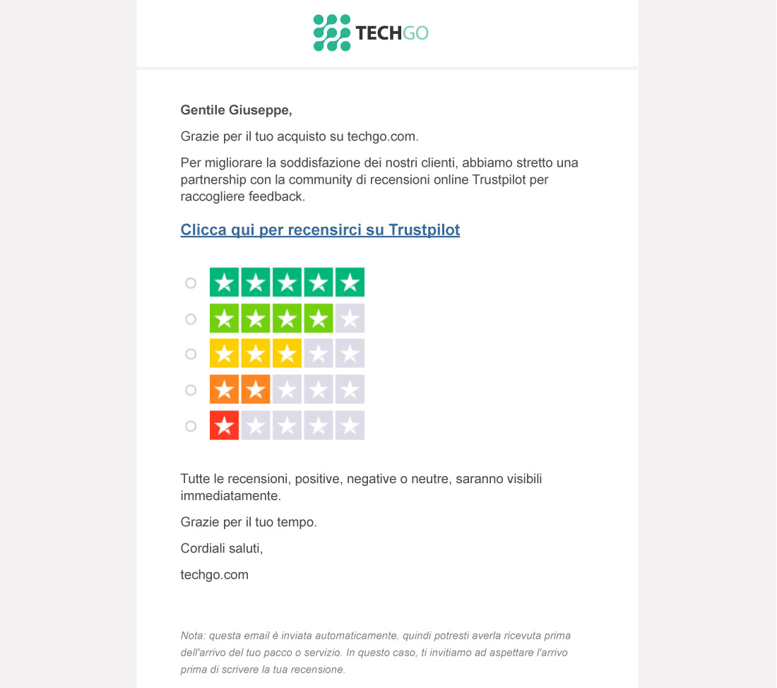 Per saperne di più, Trustpilot ha scritto una guida completa con i 5 modi per invitare i clienti a lasciare recensioni.