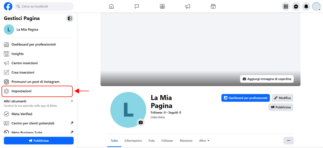 Per abilitare questa funzione sulla tua Pagina, parti dal tuo profilo personale e passa alla Pagina aziendale tramite il menu in alto a destra.