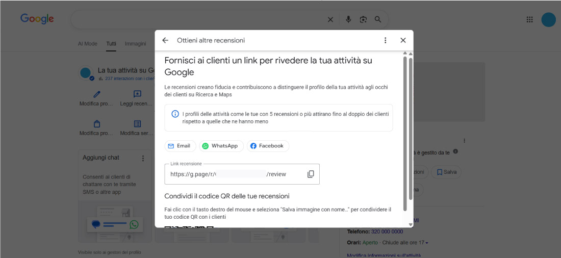 Raccogliere recensioni su Google My Business Profile