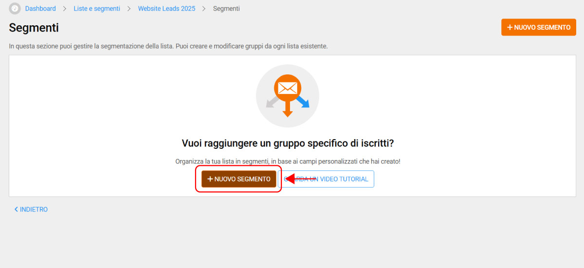 - Clicca su Segmenti e poi su Nuovo segmento.