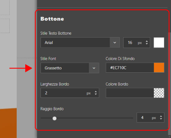 Alcuni elementi (titoli, testi e bottoni) includono infatti due opzioni dedicate: