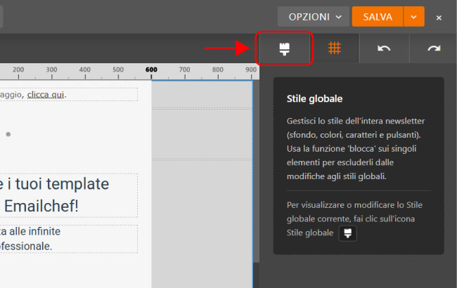 Gli Stili globali ti permettono di definire l’aspetto globale della tua email da un unico punto, senza dover modificare manualmente ogni singolo elemento.