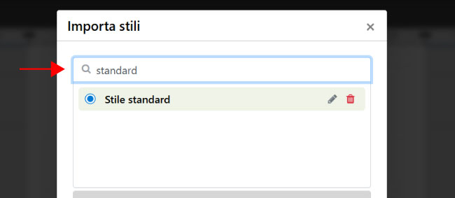 Puoi usare la barra di ricerca per trovare rapidamente uno stile specifico inserendo il nome che gli hai dato.