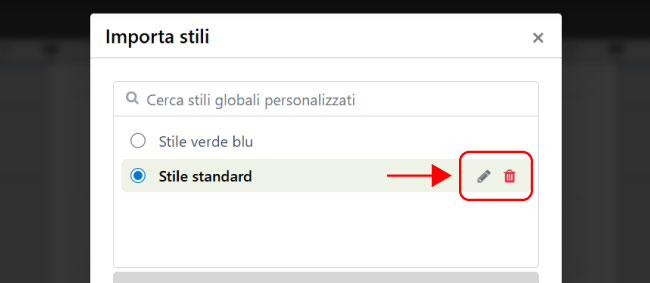È possibile rinominare il tuo stile cliccando sull’icona della matita.