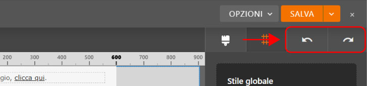 Sempre sulla destra sono presenti anche i pulsanti Annulla e Ripristina, per tornare facilmente sulle modifiche recenti senza perdere il lavoro già fatto.
