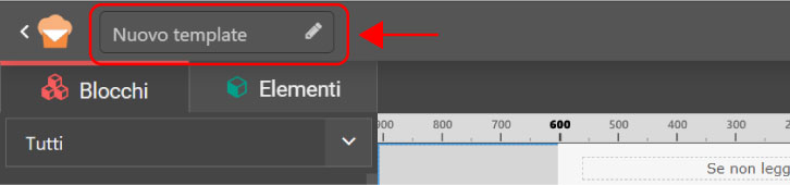 A sinistra trovi il box per rinominare il template, così da tenerlo organizzato e facilmente riconoscibile.