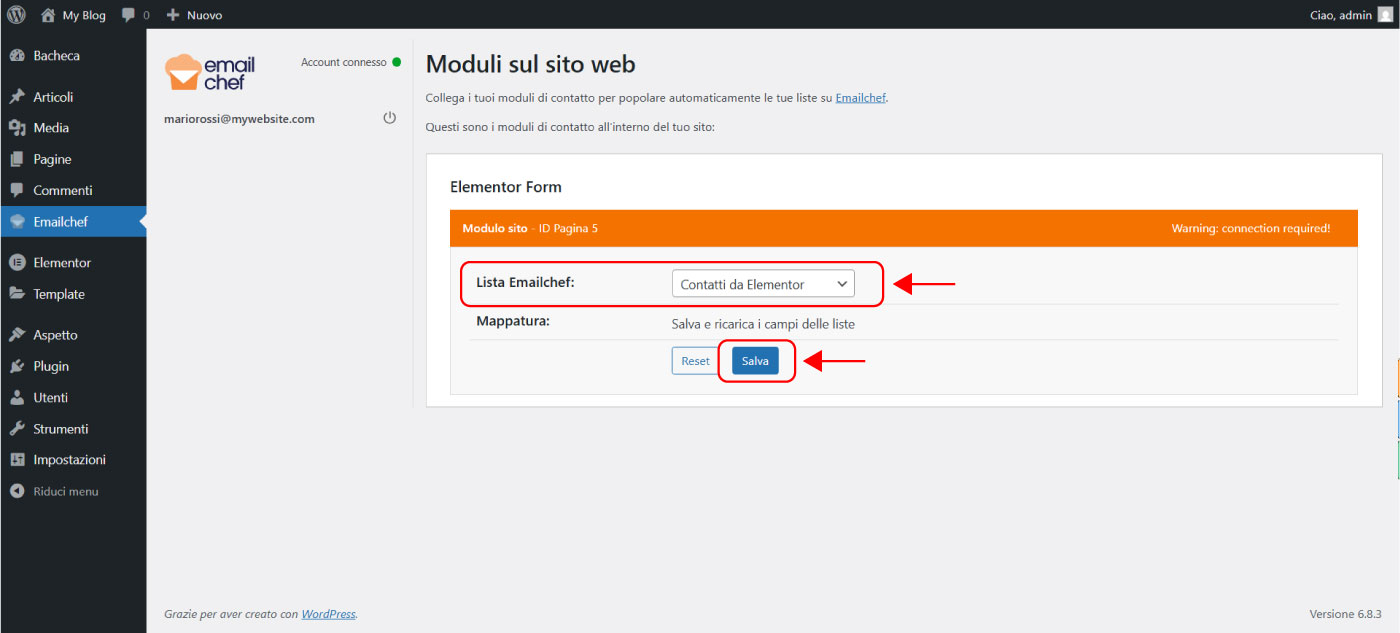 Questo plugin è il ponte diretto tra Elementor e il tuo account Emailchef.