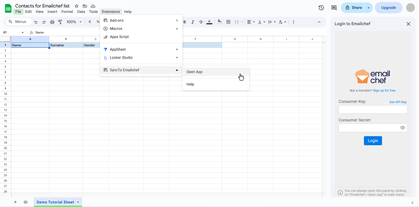 Inizia a migliorare la tua strategia di marketing trasferendo i dati raccolti su Google Sheets™ verso le tue liste Emailchef grazie all’add-on SyncTo Emailchef.