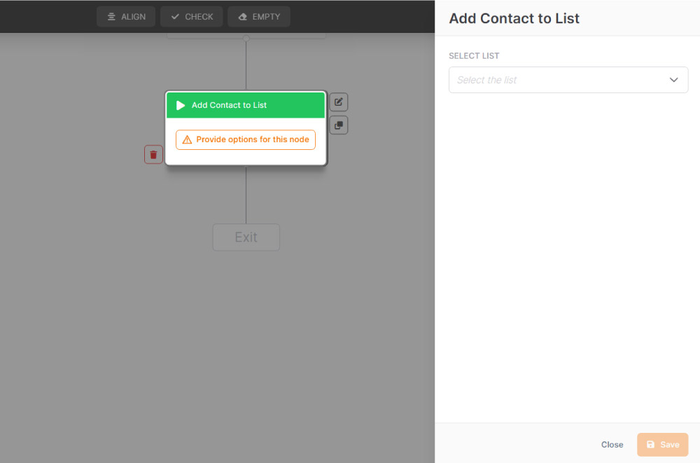 The Add contact to list action allows you to automatically subscribe a contact to a specific list within your Emailchef account.